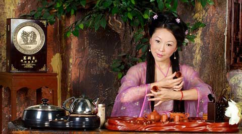 “孔雀开屏”,是孔雀向它的同伴展示它锦绣的羽毛,在泡茶之前,让我借“孔雀开屏”这道程序向大家展示我们这些典雅精美,工艺独特的工夫茶具。茶盘:用来陈设茶具及艳服不喝的余水。宜兴紫砂壶:也称孟臣壶。茶海:也称茶盅,与茶滤适用起到过滤茶渣的作用,使茶汤更加清澈亮丽。闻香杯:因其杯身高, 口径小,用于闻香,有留香长期坚持的作用。品茗杯:用来品茗和观赏茶汤。茶道一组,内有五件:茶漏:放置壶口,扩大壶嘴,防止茶叶外漏。茶折:量取茶叶。茶夹:夹取品茗杯和闻香杯。茶匙:拔取茶叶。茶针:疏浚壶口。茶托:托取闻香杯和品茗杯。茶巾:拈拭壶底及杯底的余水。随手泡:保证泡茶过程的水温。